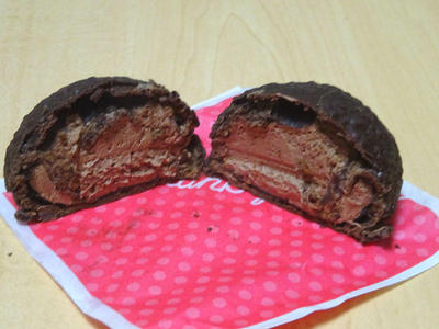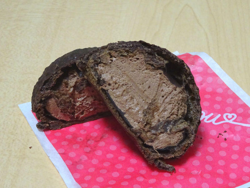 チョコクリームをアップで。ぎっしり詰まっていて、これはたまらない。濃いめのチョコなので、思ったほど甘くないのもいいです。
