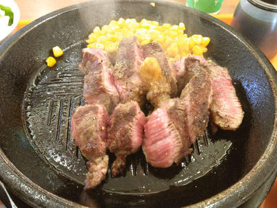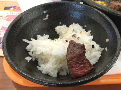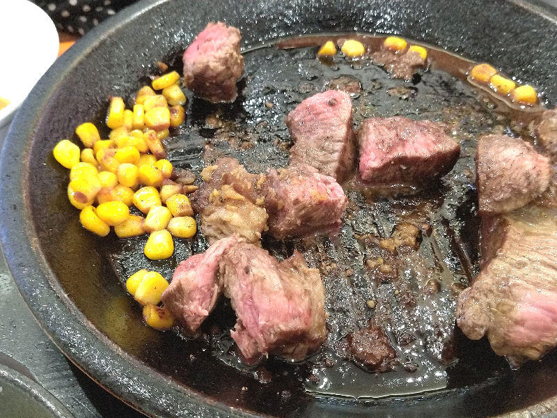 あつあつジュージューの鉄板にがっつりとステーキ200g。なんかもう、この量でも結構多い感じがします。これだけの塊肉を食べるのは久しぶりな気がしますね。