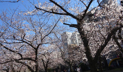 錦糸公園までお花見に行ってきました。散り始めていましたが、まだお花見するには十分なくらいに咲いていました。