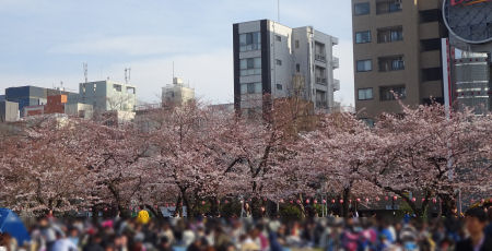 日曜日(4/2)は、毎年恒例の錦糸公園でのお花見でした。満開まではまだ少しでしたが、天気が良くて混雑していました。 -