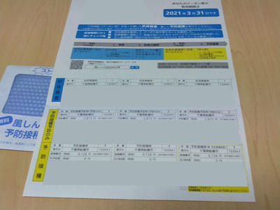 風しんクーポンは、抗体検査、予防接種の予診、予防接種の3種類で1セットになっています。いずれも自己負担金が0円となるので、この機会に予防接種をしておく事にしました。