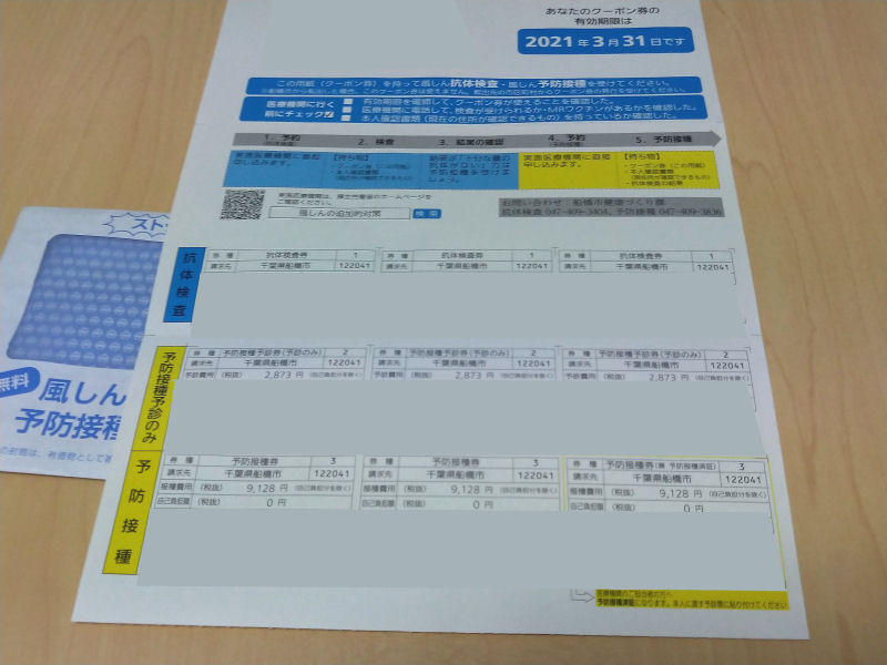 船橋市より、風しん抗体検査ならびにワクチン接種の無料クーポンが送られてきたので行ってきました。