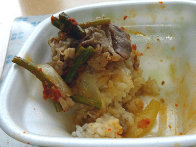 ニンニクの芽牛丼。特にトッピングはセパレートではなく、普通に最初からのっている感じでした。なにげに、すき家のお弁当って十数年ぶりなので覚えていません。すき家の夏メニューのニンニクの芽牛丼は、すき家のトッピング牛丼の中では当たりの方で、毎年楽しみにしているので、ちゃんと食べれてよかった。