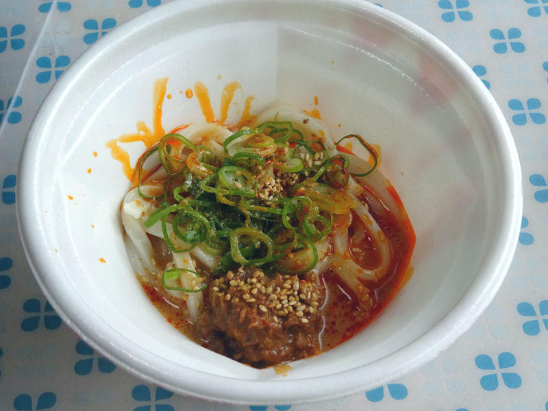 冷やし坦々うどん。テイクアウトでは初めてだと思います。スープが袋入りだったとは。しかし、これがまた美味い。あのタレだけ欲しくなります。