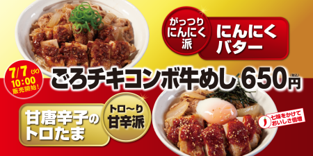 松屋 ボリューム満点 甘唐辛子のトロたま ごろチキコンボ牛めしをテイクアウトでいただく