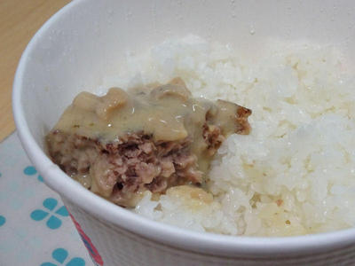ソースがたっぷりなので、最後は、ハンバーグライスでいただきました。このソースだけでも美味しいなぁ。ソースだけ、通販で出したら売れそうな気がしますよ、これ。