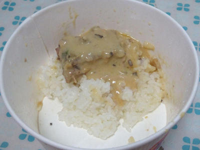4/11のお昼ごはんは、松屋のテイクアウトでした。オマール海老ソースのクリームカレーを食べてみました。 -