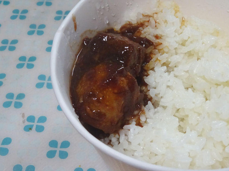 ビーフシチュー自体も美味しくて、ご飯にも合うんですな。まあ、これビーフシチューなので、パンと合わせてもいいのかもしれないですが。ゆで卵とお肉だけで、大盛りご飯いっぱいいただけちゃいました。