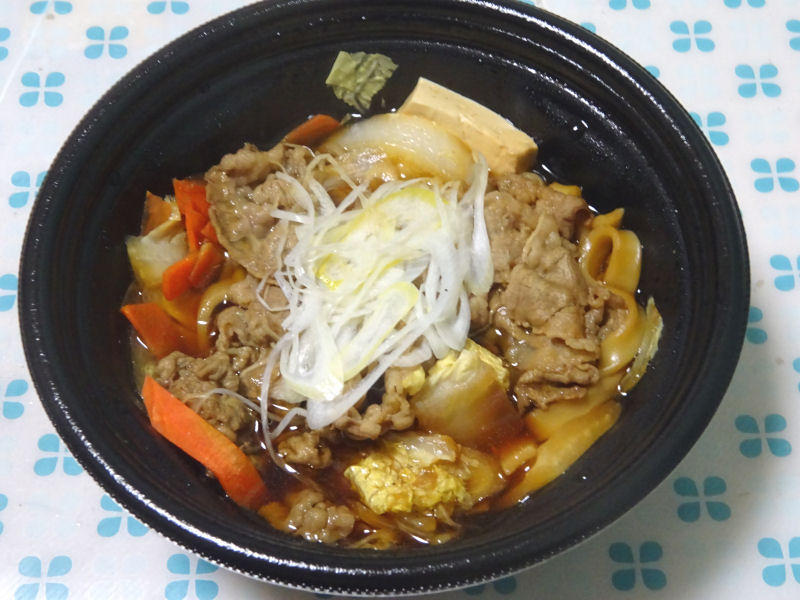 牛の鍋焼き。すき焼きといった感じですが、最初からうどんも入っています。牛肉メインで、白菜、人参、豆腐などが入っています。味付け的には、完全にすき焼きですな。