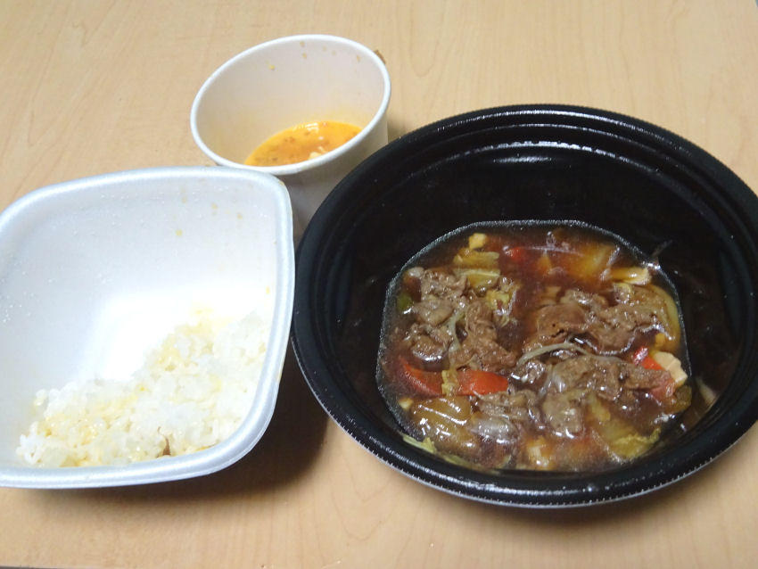 牛の鍋焼き御膳がテイクアウトでも食べれるというので、たまにはすき焼きを食べたいなのと思いまして。
