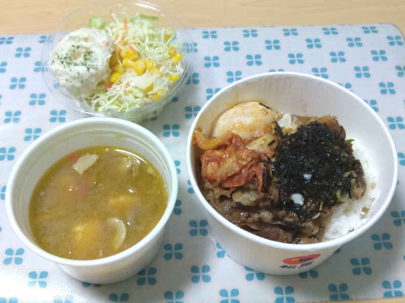 3/6のお昼ご飯は、松屋のテイクアウトでした。お初の旨辛牛焼ビビン丼を食べてみる事にしました。