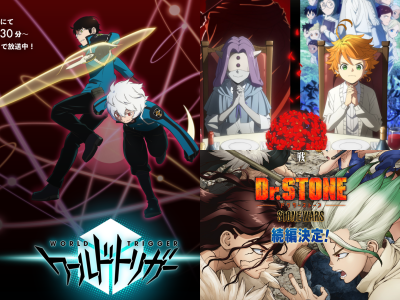 2021年冬アニメ(1~3月)観ていたものを並べてみます。2021年1月開始のアニメで観ていたのは3作品でした。 「約束のネバーランド」、「ワールドトリガー」、「Dr.STONE」、となります。