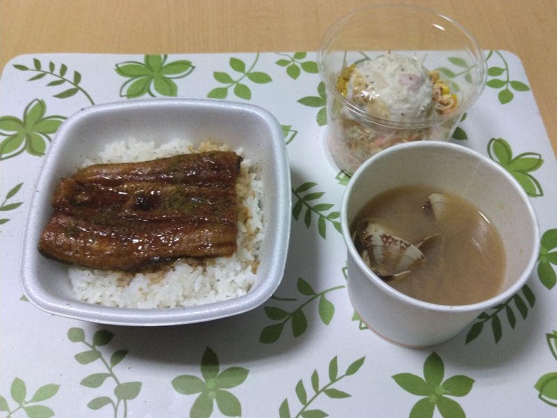 鰻重に、あさり汁、ポテトを付けてみました。鰻重はご飯大盛りないのね。代りに鰻を2枚や3枚に増やせるようです。