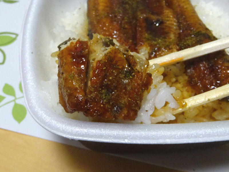 肝心の鰻の方ですが、思いの外、ふんわりしている気がしますね。ご飯と合わせて、さっそくいただきました。