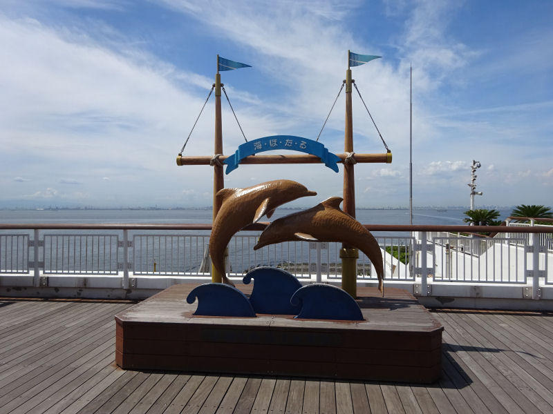 海ほたるの形状は船のような形をしていて、四方にモニュメントがおいてあります。ここは、イルカ。