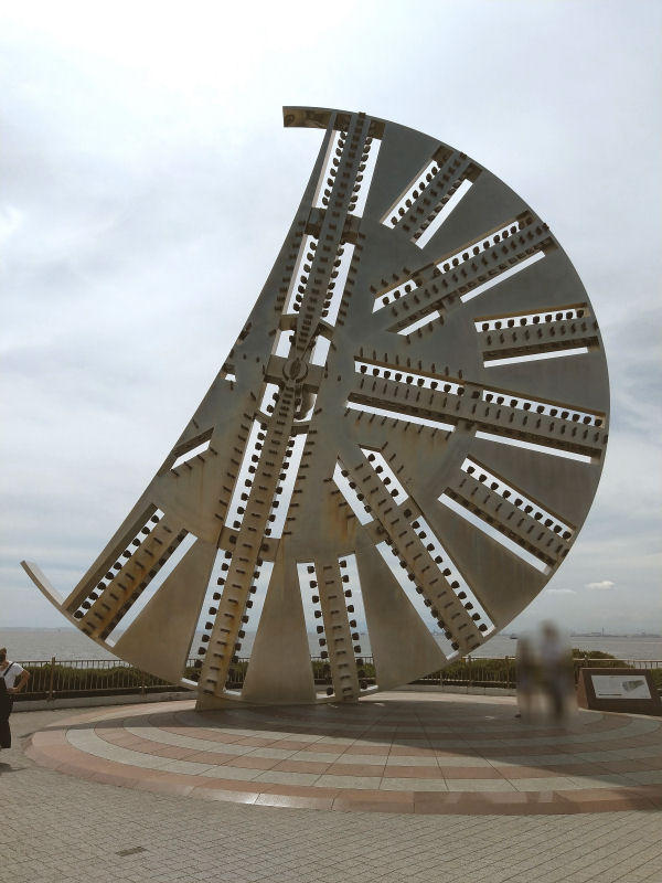 海ほたるにある、モニュメント。これは、アクアラインを掘ったシールドマシンのカッターの実物なんだそうです。近づいてみると、錆びたりはしていますが、たしかにカッター部分がありました。