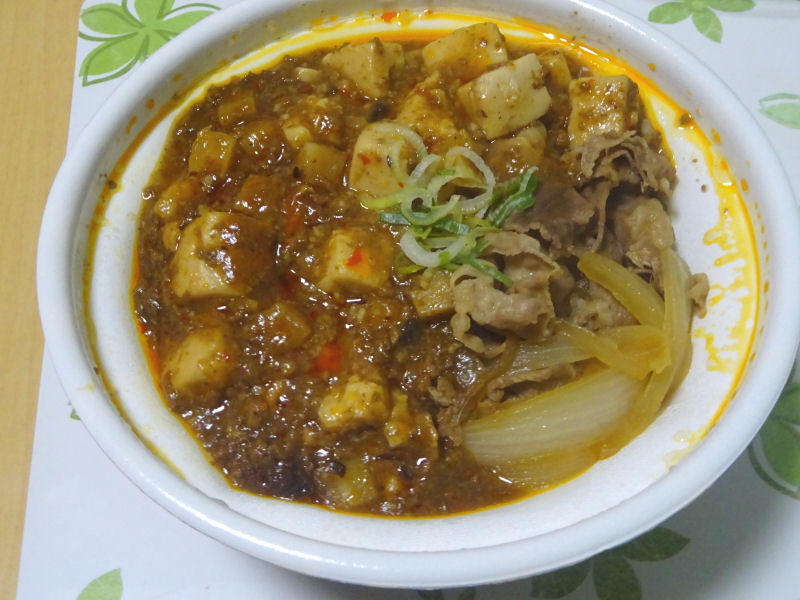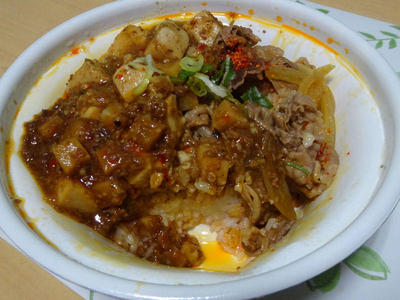 前にも食べた事があったんですが再び。牛あいがけ麻婆丼を食べてみました。