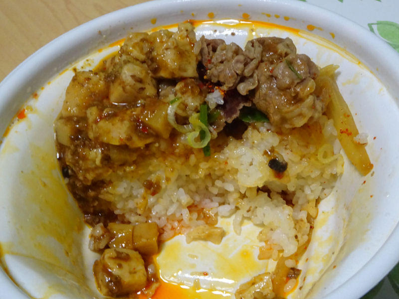 あっという間に、残り少しになりました。一応、牛肉ものこしつつ、麻婆豆腐でご飯もりもり食べました。最近食べたすき家のメニューでは割とお気に入り。