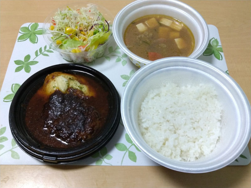 8/22のお昼ご飯は、松屋のテイクアウトで、ごろごろ野菜のうまトマチーズハンバーグ定食をいただきました。