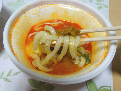 なか卯のいつものうどんですが、カレー味のスープが思いの外美味しい。担々スープとは違いますが、肉味噌もちゃんと合ってるし、これは間違いなく美味しいやつ。