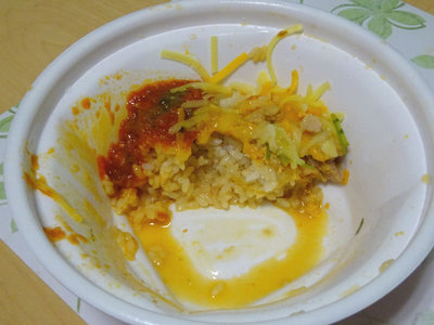 少し時間が経つと、トッピングのチーズがほどよく溶けてよく馴染んできます。この状態で食べるのが美味しいですね。