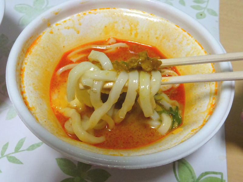 まずは、カレー坦々うどん。いつもの、坦々うどんに、カレー味が出来ました。いや、これはありそうでなかった組み合わせですよ。