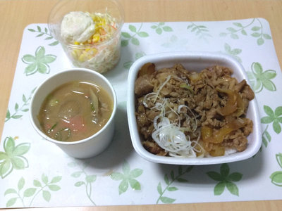3/27のお昼ご飯は、吉野家のテイクアウトにしました。