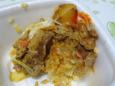 牛焼肉丼、もともとある牛カルビ丼とくらべると、お肉が柔らかで食べやすい。通常の牛丼と比べると、焼いてあるんで、さっぱりした感じがします。