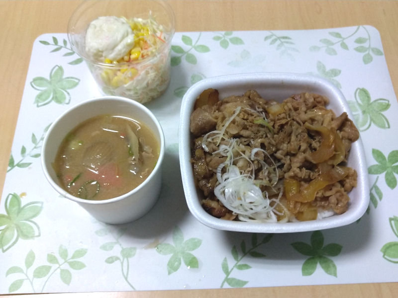 2/27のお昼ごはんは、吉野家のテイクアウトで、豚生姜焼き丼をいただきました。 -