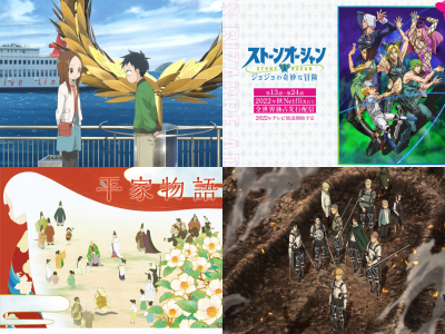 タイミングが完全に遅れてしまいましたが、2022年冬アニメ(1~3月)観ていたものを並べてみます。2022年1月開始のアニメで観ていたのは4作品でした。 開始順で、「からかい上手の高木さん」、「ジョジョの奇妙な冒険 ストーンオーシャン」、「平家物語」、「進撃の巨人」となります。