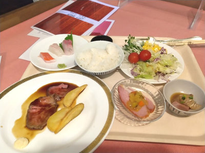 夕食バイキング、いろいろメニューがあって良かったです。ローストビーフの他にも、お刺身があったりするのはおもしろかった。夜のバイキングはカレーがあったので、牛すじカレー食べました。たらふく食べすぎました。