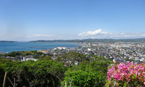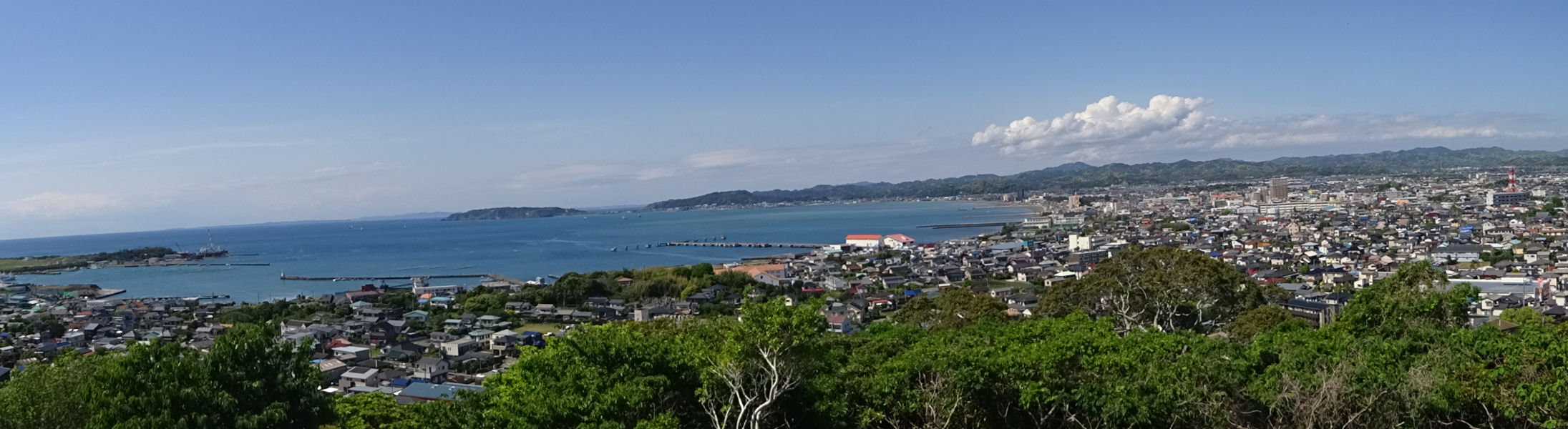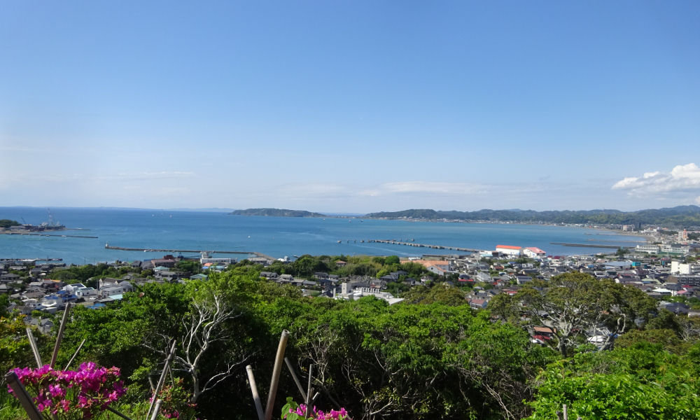 館山からの海もよく見えました。薄く白んでいた空も、くっきりと青空が見えました。いい天気にいい景色です。