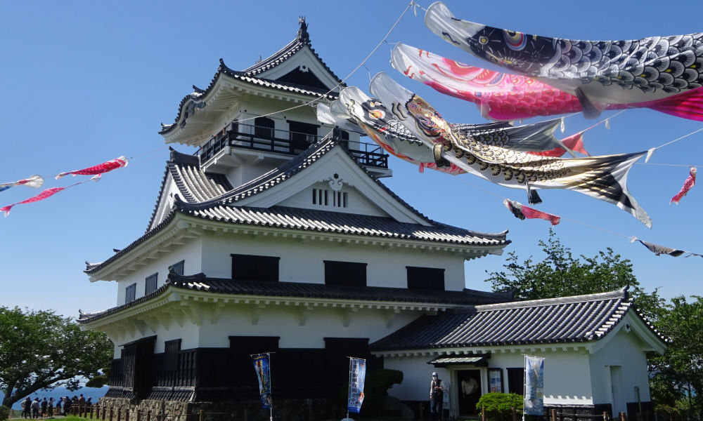 2日なので、一応平日なんですが、舘山城のある城山公園は割と賑わっていました。駐車場に車を停めて、城山公園を登る事10分ちょっと。ようやく、館山城にたどり着きました。そこまで急ではないとはいえ、ひたすら坂道を登るのはさすがに疲れました。