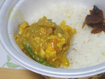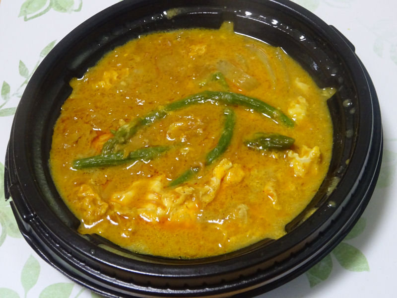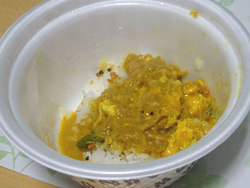 通常のカレーとも、グリーンカレーとかとも違う風味ですが、これもタイカレーの一種なんですね。具材が卵と蟹なので、固形物があまりない感じですね。普段のごろごろチキンカレーとかに比べると、すいすい食べれちゃう感じです。