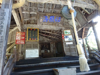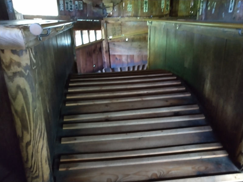 さざえ堂の入り口です。左側へ入って右回りで登っていきます。螺旋階段のようなつくりですが、上までいくとそのまま下りの通路になっているという作りです。