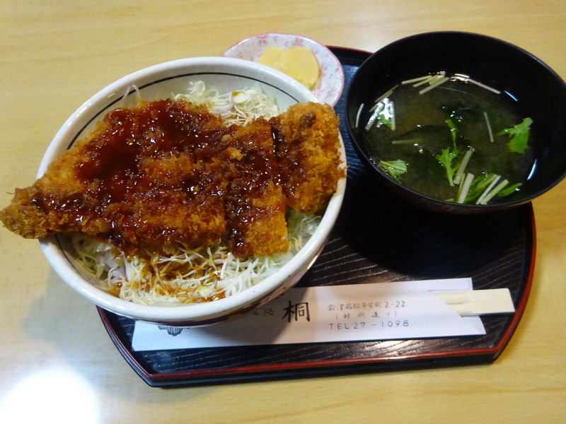 最終的に、「味処 桐」でソースかつ丼を食べてきました。大きなかつにたっぷりなソースですが、これでも通常の会津ソースカツ丼と比べるとソース少ないのだとか。割りとしっかりソースをくぐらせるタイプが多いようです。なので、追いソースも用意されています。