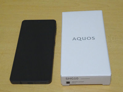 箱が小さいので、梱包されてきた箱も、コンパクト。大きさ的には、前スマホのsense3 plusより、若干小さめですが、このくらいでも十分ディスプレイ大きいのでいいでしょう。