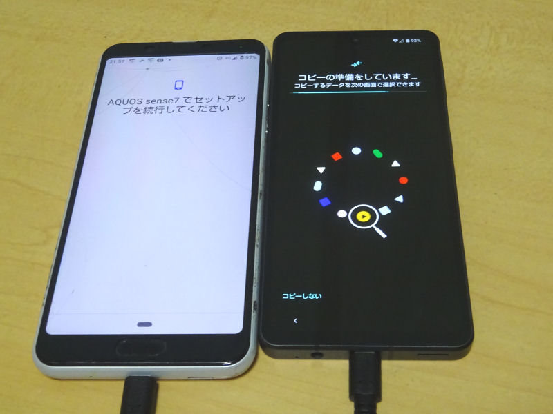 オンライン購入なので、自前でSim挿入してセットアップです。今回は、AQUOS Phone 同士ってのもあって、USB-Cケーブル同士をつないで、簡単にアプリなどの移行作業が出来ました。