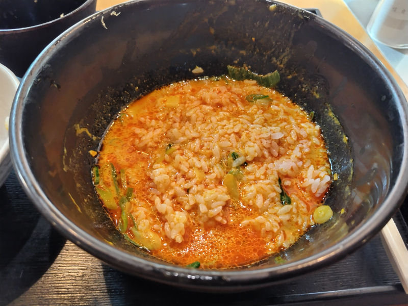 そして、せんきちといえば、ラストにごはんをインするのですよ。たっぷりスープも残しておいたので、ちょうどよいひたひた具合。辛吉なので、スパイシーさもあって、これは止まらない。