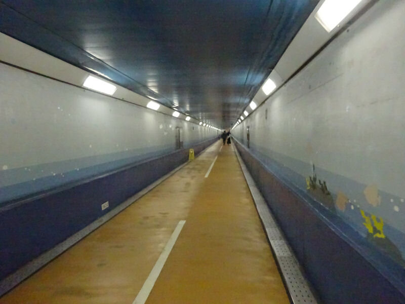 関門トンネル人道は、前から行ってみたかったのでやっと来れたというところです。距離はさほどないので徒歩で歩けるくらいなのがいいですね。とはいえ、向こうが見えないくらいの距離ではあります。