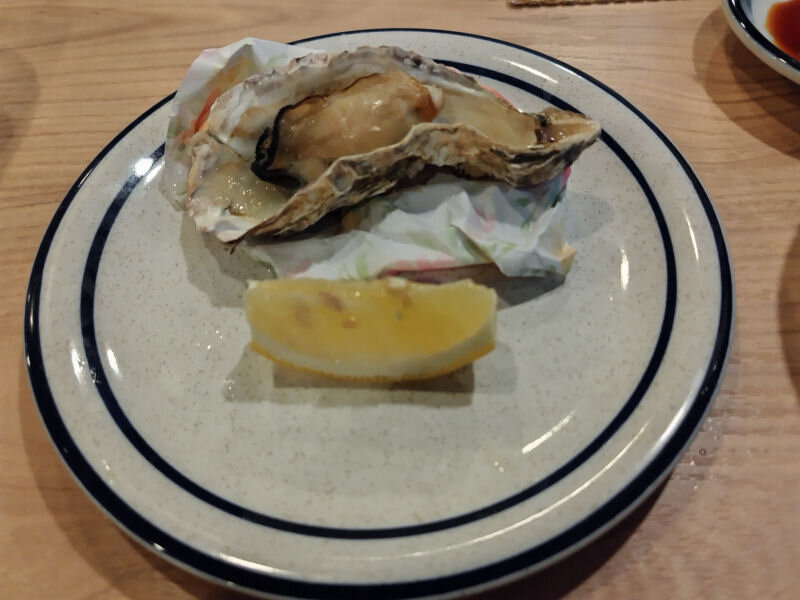 広島に来たんで、焼き牡蠣もたべました。1つだけ。