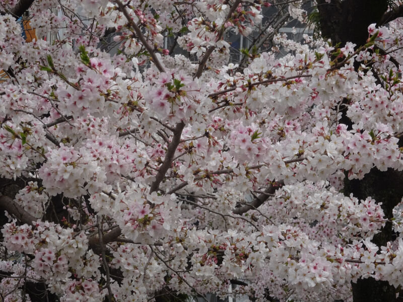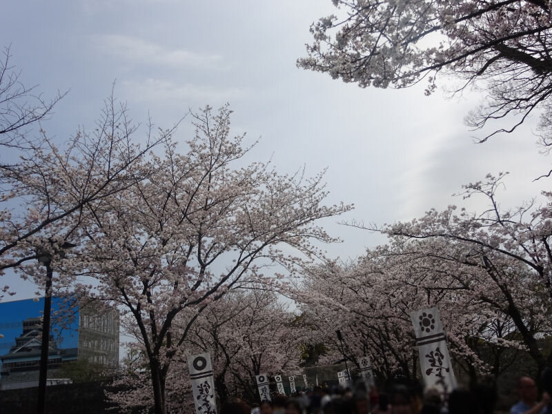 3/31の天候は晴れたり曇ったりでしたが、気温が高かったので、汗ばむ陽気でした。駐車場から、熊本城天守閣を目指す途中にも沢山桜がさいていました。