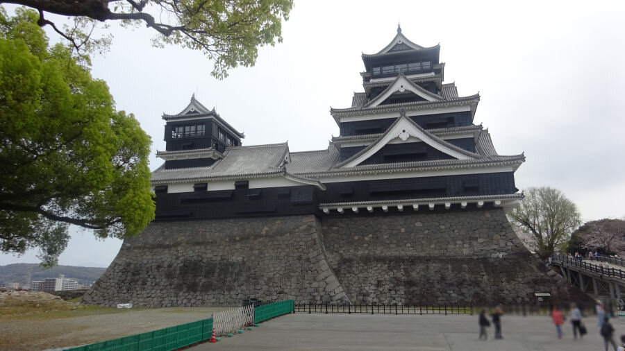 ようやく熊本城天守閣の裏手までやってきました。天守閣は、補修済みの状態でしたが、まだ熊本地震からまだ修復中の櫓や城壁もありました。まだ場内全体が復元できるまでには至っていないようです。