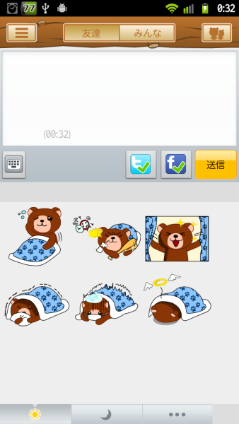 iOS版では、メニューに"ホーム"があって、そこからしてる事を書き込めたが、Android版では画面下部の「してる」と書いてあるところをクリックすると、入力画面が出てくる。