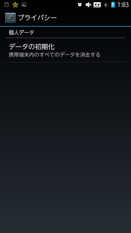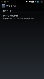データの初期化とあるので、これを選択して初期化します。端末の再起動を含めて数分で終わると思います。