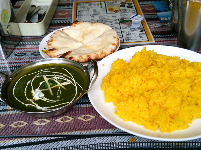 今回は、カレーセットでサグチキンとサフランライスにしました。さらに、サイドメニューのチーズナンを注文しました。