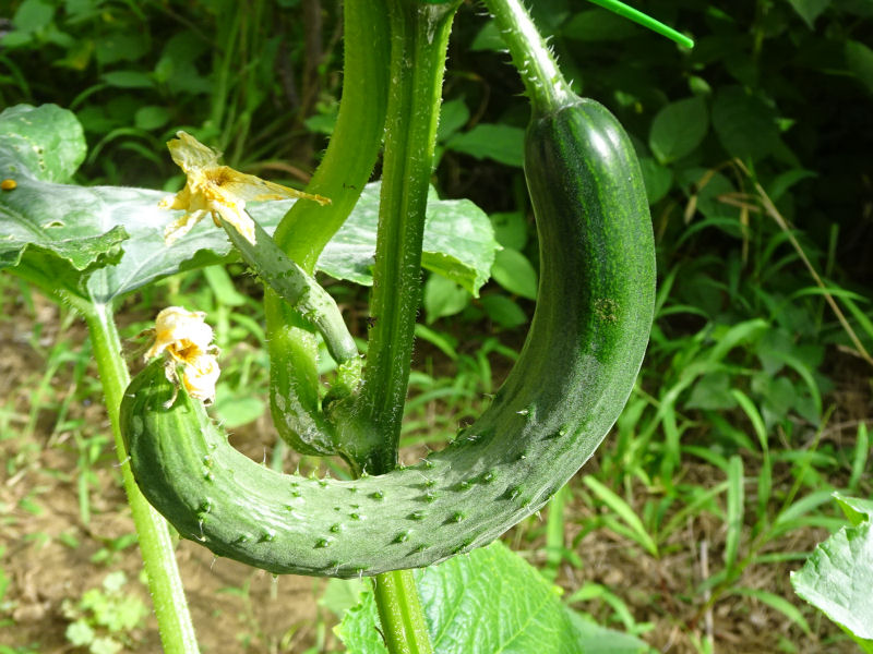 梅雨時で雨も適度に降っていたので、胡瓜もすぐに大きくなります。次は、ミニトマトか茄子が収穫できるかなというところです。