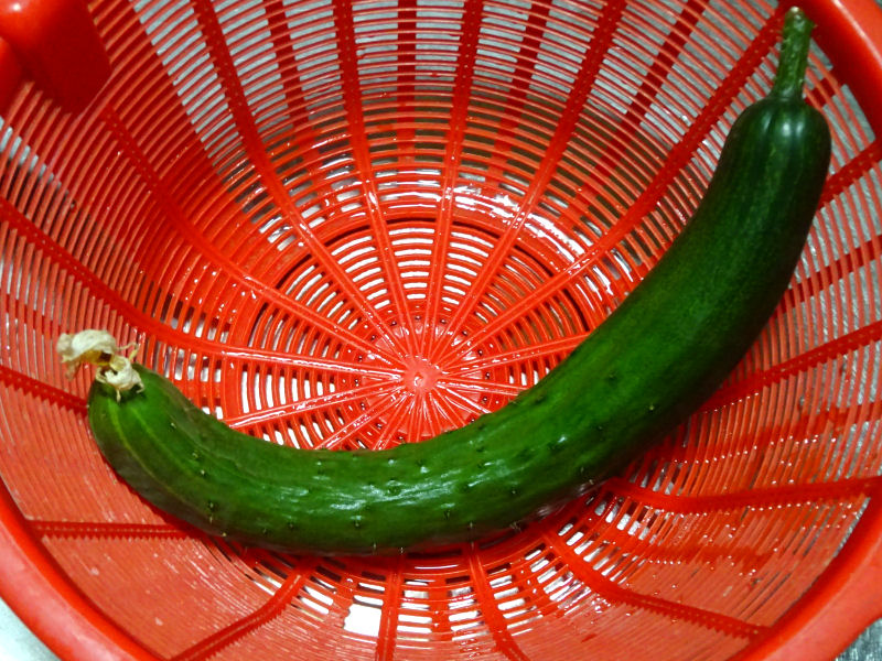 葉の影に隠れて気づかないうちに、かなり大きくなっていました。胡瓜は、放っておくとどんどんおおきくなってしまうので、急遽収穫する事になりあました。