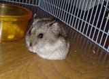 エサをあげたら、さっそくエサ入れに入ってがっついてました。ここんところ、デカペレばっかりなんで、ジャンガリアンの主食でも喜んでいます。