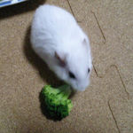 エサの時間、さっそくブロッコリーに食いつくアイです。